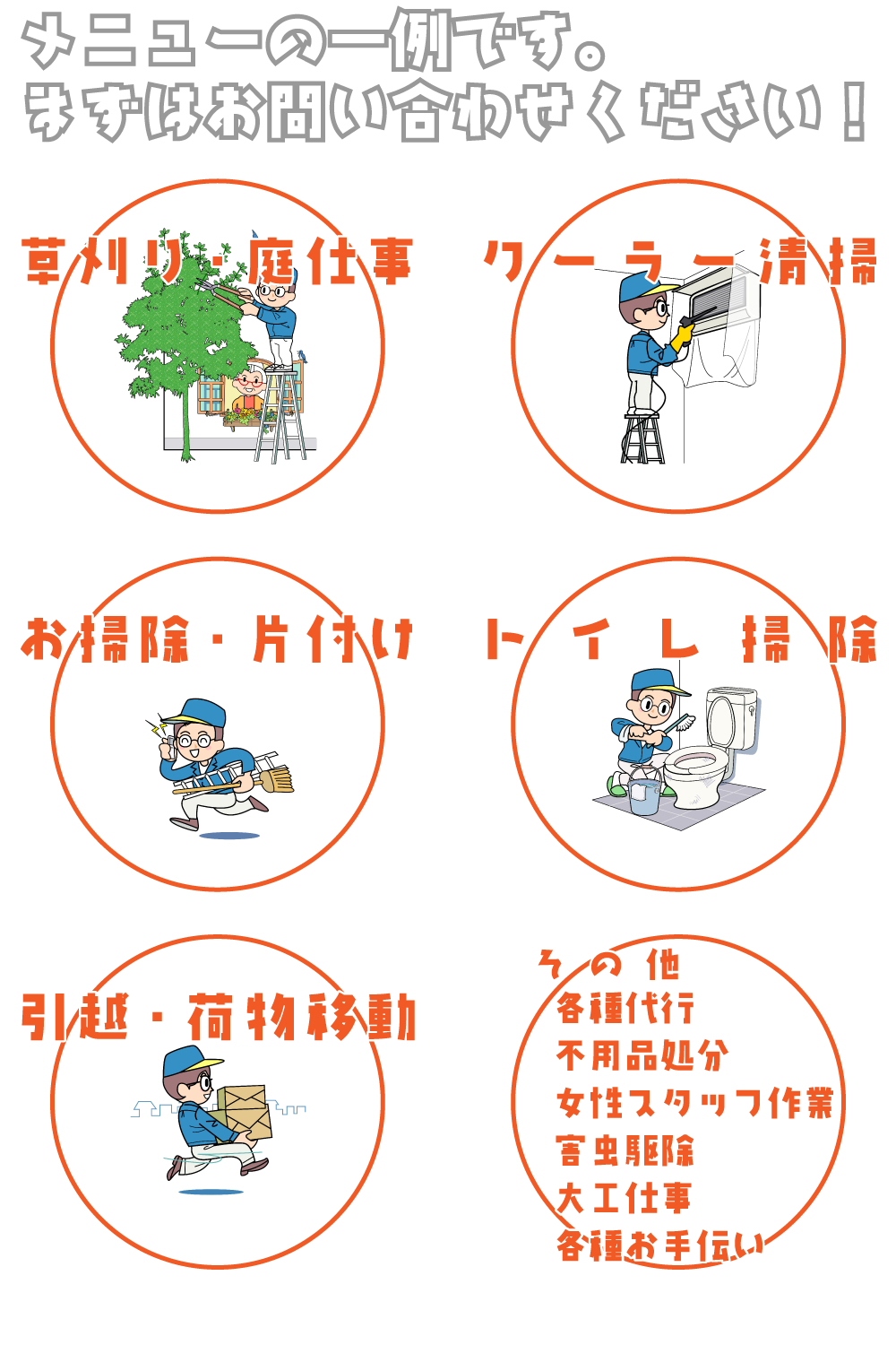 | 1名/1時間の作業単価です。作業時間は7時~22時となりす。 | |
